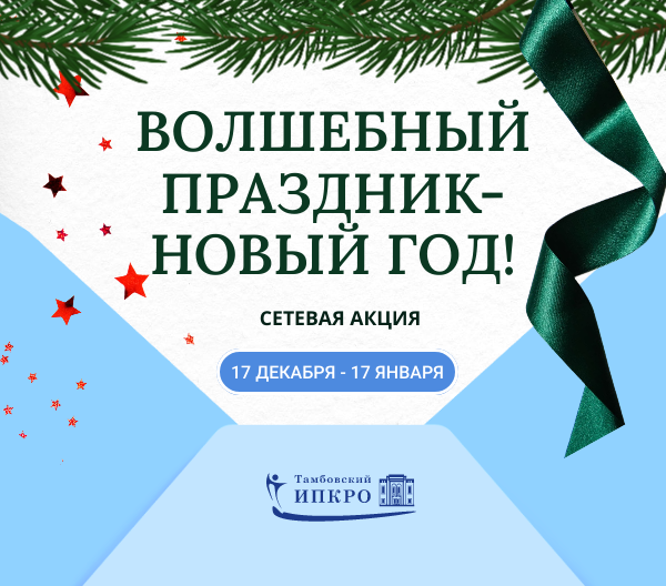 Уважаемые коллеги! Приглашаем окунуться в атмосферу волшебства и праздника! С 17 декабря 2025 года по 17 января 2026 года ТОГОАУ ДПО «Институт повышения квалификации работников образования» проводит сетевую акцию для детей с ограниченными возможностями здоровья «Волшебный праздник – Новый год!».