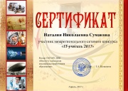 20:54, 24 февраля 2016 Сумакова Н. Н. сертификат конкурса.jpg (файл) 26 Кб Сертификат участника конкурса 2015 г. 1