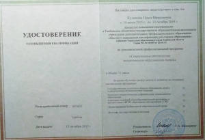 ♦ '''2015 год'''-"Современные технологии инклюзивного образования детей",(ТОИПКРО)